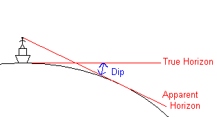 The formulae are; Dip = 0.97 x Square Root (Ht of Eye in feet) Dip = 1.76 x Square Root (Ht of Eye in meters) Dip is subtracted from the Observed Altitude to give Apparent Altitude. Refraction The deflection of light as it enters/ passes through the atmosphere is known as Refraction. Refraction is stable and therefore predictable above about 15°, below that one needs to consider the characteristics of the atmospheric layers through which the light passes at that time. (Taking the altitude of bodies at less than 15° is usually avoided for this reason.) For altitudes above 15°, a simplified formula is adequate (± 0’.02) Refraction = 0.96/ Tan (Altitude) Refraction tables make assumptions on the layers for low altitudes and should be treated with caution. +/- 2 is not uncommon at an altitude of 2. Refraction is subtracted from the Apparent Altitude to obtain the True Altitude. Temperature and Pressure Correction for Refraction The correction for Refraction assumes a temperature of 10° C and pressure of 1010mb. This may be modified for actual temperature and pressure. A temperature difference of 10° C will alter Refraction by 3% and a 10mb pressure difference will change Refraction by 1%. (0’05 and 0’.02 for an altitude of 30°) The multiplier to correct for Temperature (°C) and Pressure (mb) = Pressure/ 1010 * 283/ (Temperature + 273) Semi-Diameter When measuring the altitudes of the Sun, Moon, Venus and Mars, it is usual to align either the top (Upper Limb) or bottom (Lower Limb) of the body with horizon. This offset must then be removed before comparison with the calculated value. The angular diameter of a body depends on its distance from the Earth. Thus for the Sun the Semi-Diameter varies between 16’.3 in January, when the Sun is closest and 15’.7 in June when it is furthest away. For a lower limb observation, the Semi-Diameter should be added to the True altitude. Augmentation of the Moon’s Semi-Diameter The Earth’s radius is about 1/ 60th of the distance to the Moon. The reduction in distance compared to when on the horizon, has a measurable effect on its size. In contrast the Sun’s distance is 23,000 times the Earth’s radius and the effect is negligible. Augmentation = Sin (Altitude) x Horizontal Parallax Horizontal Parallax is used in the formula as the lunar distance is not provided in a Nautical Almanac. This correction is typically 0’.15 and should be added to the Moon’s Semi-Diameter before applying the Semi-Diameter to the True Altitude. Parallax in Altitude The Parallax correction allows for the difference in the altitude measured on the Earth’s surface versus the altitude that would be measured at the centre of the Earth. The effect of parallax reduces with altitude. It is greatest when the body is at the horizon (Horizontal Parallax) and declines to zero when the body is overhead. The effect is also proportional to the distance of the body. Thus the Horizontal Parallax for the Moon is about 1° but only 0’.15 for the Sun. This correction must be included for the Moon but is usually ignored for the Sun. It can be significant for Venus and Mars, depending on their distance, but is always insignificant for Jupiter and Saturn. (< 0’.05) Sin (Horizontal Parallax) = Earth’s Radius/ Distance of Body After correcting for altitude, the correction is known as Parallax in Altitude. Parallax in Altitude = Horizontal Parallax x Cos (Altitude) Parallax in Altitude should be added to the True Altitude. Reduction of the Moon’s Horizontal Parallax Horizontal Parallax is proportional to the Earth’s radius. Therefore as the Earth’s radius declines with latitude, so does Horizontal Parallax. Correction = Horizontal Parallax * [Sin (Lat) ^ 2] / 298.3 This should be subtracted from Horizontal Parallax before calculating Parallax in Altitude. Examples of Corrections to a Sextant Observation Add or Subtract For a Star Sextant Altitude 31° 22’.0 Index Error 2’.0 Depends on the error Observed Altitude 31° 24’.0 Dip -3’.0 Subtract Apparent Altitude 31° 21’.0 Refraction - 1’.6 Subtract True Altitude 31° 19’.4 90° 00’.0 True Zenith Distance 58° 40’.6 For the Moon Sextant Altitude 31° 22’.0 Index Error 2’.0 Depends on the error Observed Altitude 31° 24’.0 Dip -3’.0 Subtract Apparent Altitude 31° 21’.0 Refraction - 1’.6 Subtract True Altitude 31° 19’.4 Semi-Diameter 16’.5 Add for Lower Limb Parallax (in Altitude) 51’.1 Add True Altitude 32° 26’.8 90° 00’.0 True Zenith Distance 57° 33’.2 Moon’s Additional Corrections Tabulated Horizontal Parallax 59’.9 Latitude Correction - 0’.1 e.g. 52° N Horizontal Parallax 59’.8 Tabulated Semi-Diameter 16’.3 Augmentation of Semi-Diameter + 0’.15 Moon’s Semi-Diameter 16’.5 The Horizontal Parallax must be included but the Latitude correction is often ignored. Similarly the Semi-Diameter must be included but Augmentation is often ignored. |